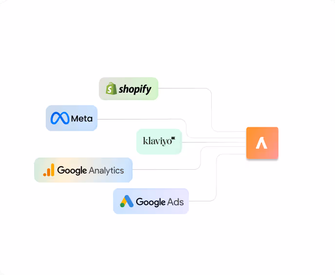 Securely link your Shopify store (and optional tools like Klaviyo, Meta Ads, Google Ads). Setup is instant and safe.